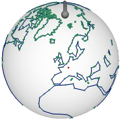 In the illustration you can see an arrangement on a sphere induced by geodesic arcs. It represents the map