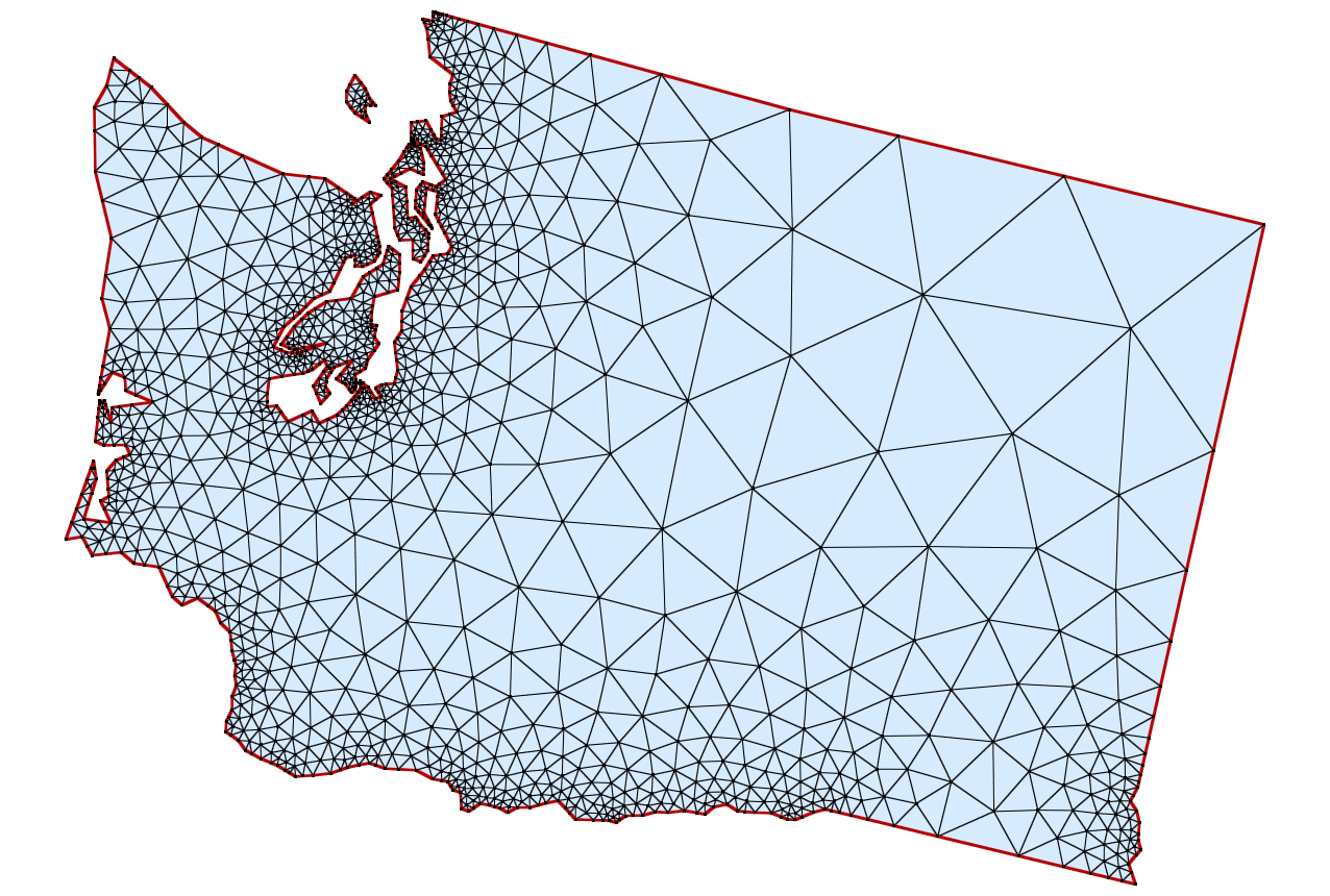 implementation of the Constrained Delaunay Triangulation is used.